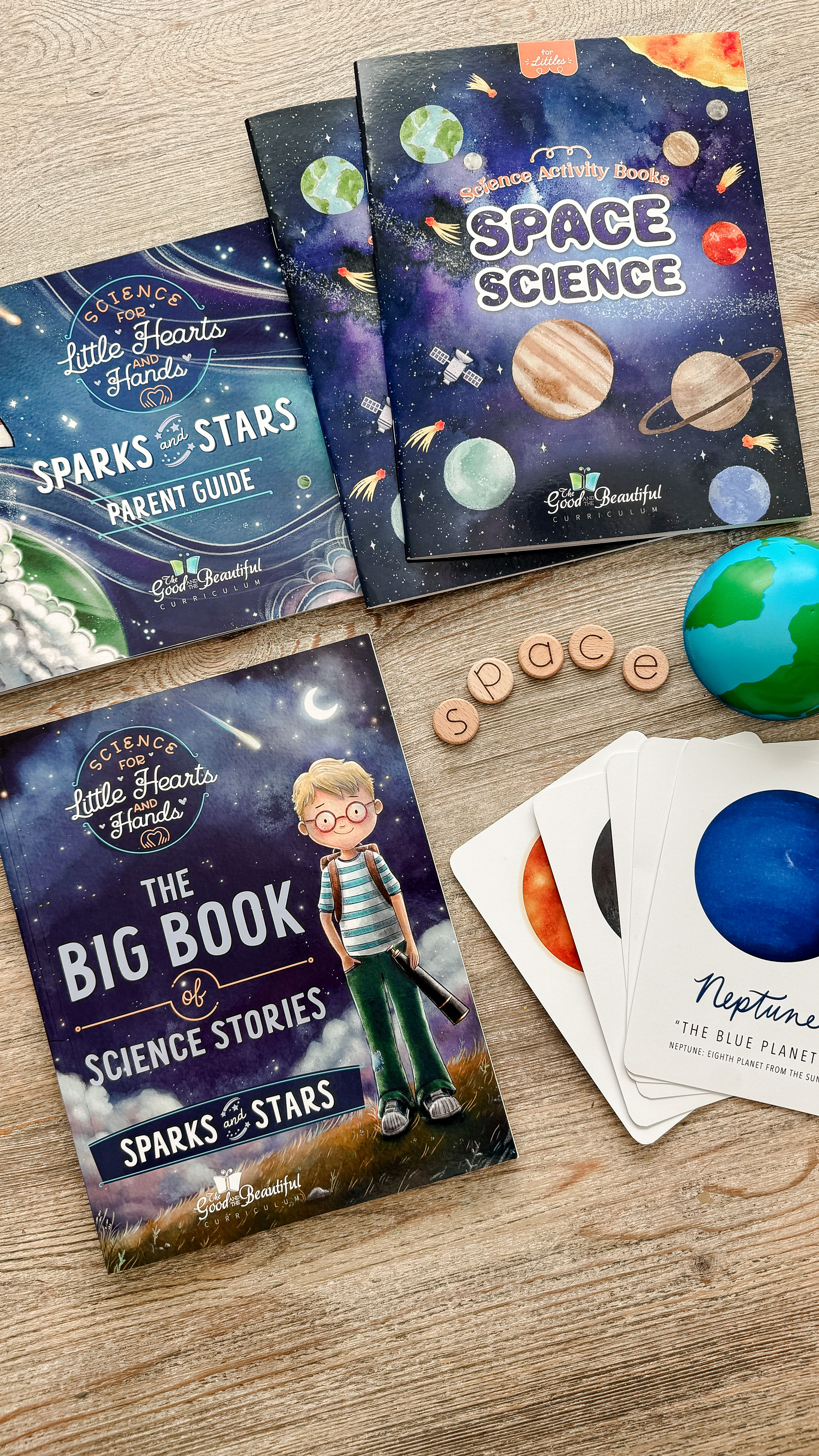 - Space and Science. My kids have been super curious about space, so we dove into a study this year. We ended up using The Good and the Beautiful’s Little Hearts and Hands Sparks and Stars and Little School of Smith’s Me and My Place in Space. I love TGATB’s Little Hearts and Hands story book and the audio narration activities. I think this curriculum is a great starting point, but if you want to make things more hands-on I’d definitely recommend My Place in Space! We really enjoyed learning about each planet and making a book for us to look back on later.