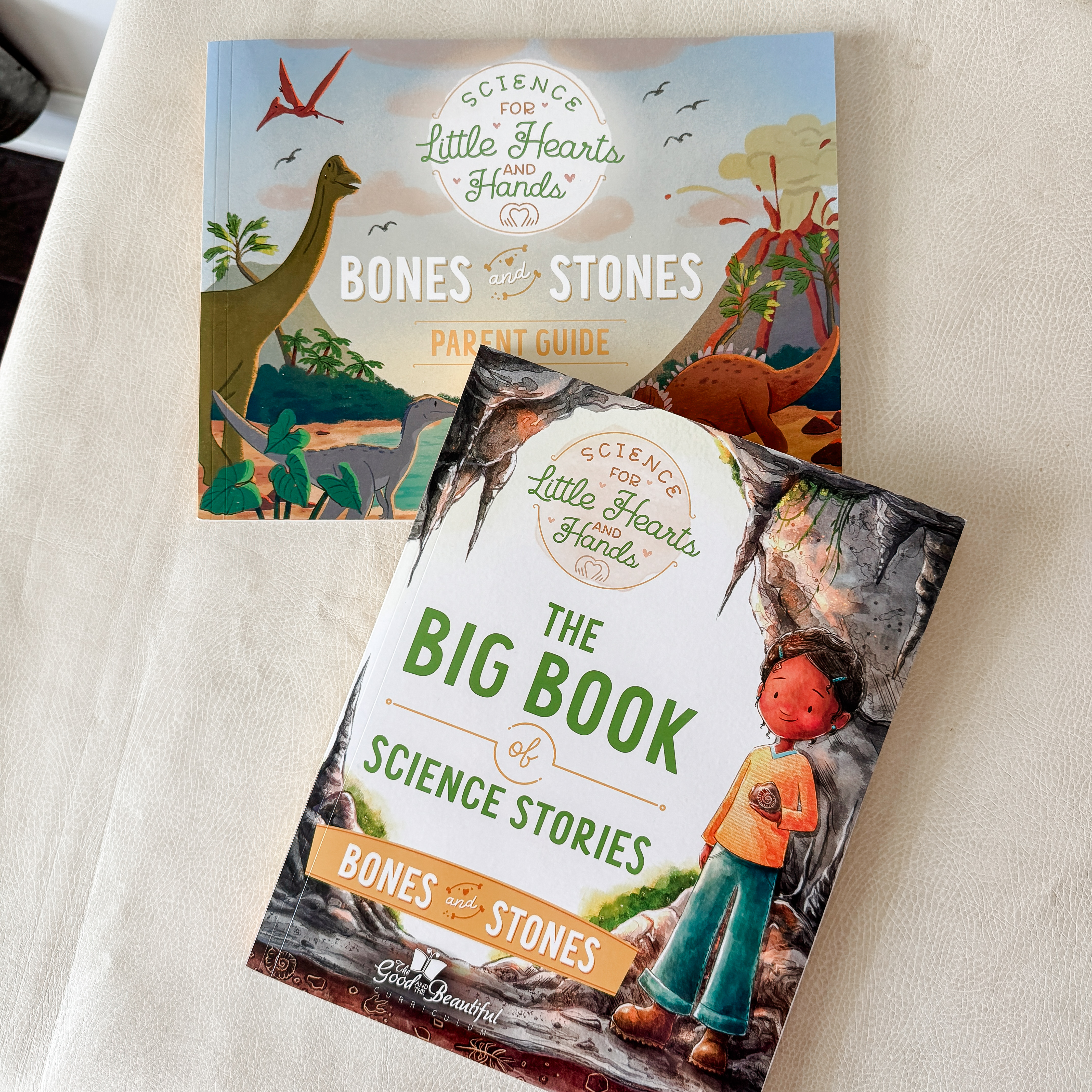 - TGATB Little Hearts and Hands: Bones and Stones. We have used a lot of the Little Hearts and Hands books and we have loved all of them! This course covers paleontology, dinosaurs, stones, minerals, volcanos, maps, and more. I love that some lessons have audio narration that kids can follow along with. There are also stories from the Big Book of Science Stories that correlate with lessons. Lessons are short and sweet, and I think they are a great introduction to science!